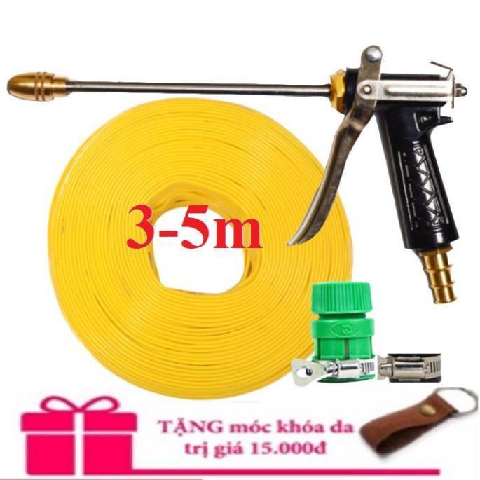 ✨ Bộ dây vòi xịt nước rửa xe,tưới cây .tăng áp 3 lần, loại 3m,5m 206318 đầu đồng,đai,nối nhựa vàng+ tặng móc khoá