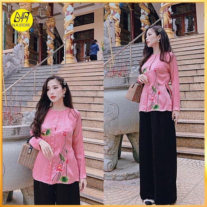 ✨Bộ Đi Lễ Chùa - Đồ Lam Nữ Đi Chùa Đẹp Cao Cấp Trang Nhã Vải Lụa Thêu Sen Ngọc 2021 Dành Cho Phật Tử AL017