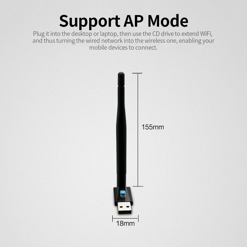 Feature:Support AP Mode. Plug it into the desktop or laptop, then use the CD drive to extend WiFi, and thus turning the wired network into the wireless one, enabling your mobile devices to connect.A...