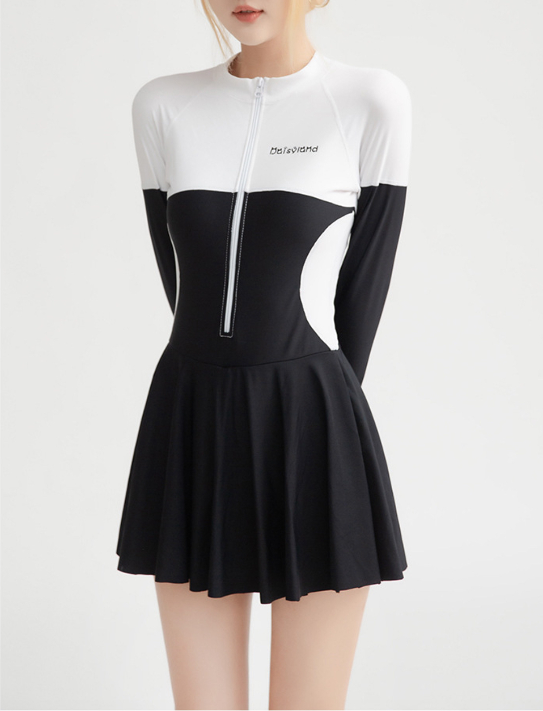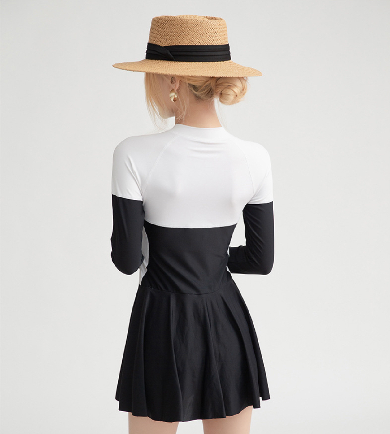 ✨Bộ đồ bơi bikini nữ 1 mảnh kín đáo đi tắm biển giấu bụng váy liền áo dài tay chống nắng - B.27
