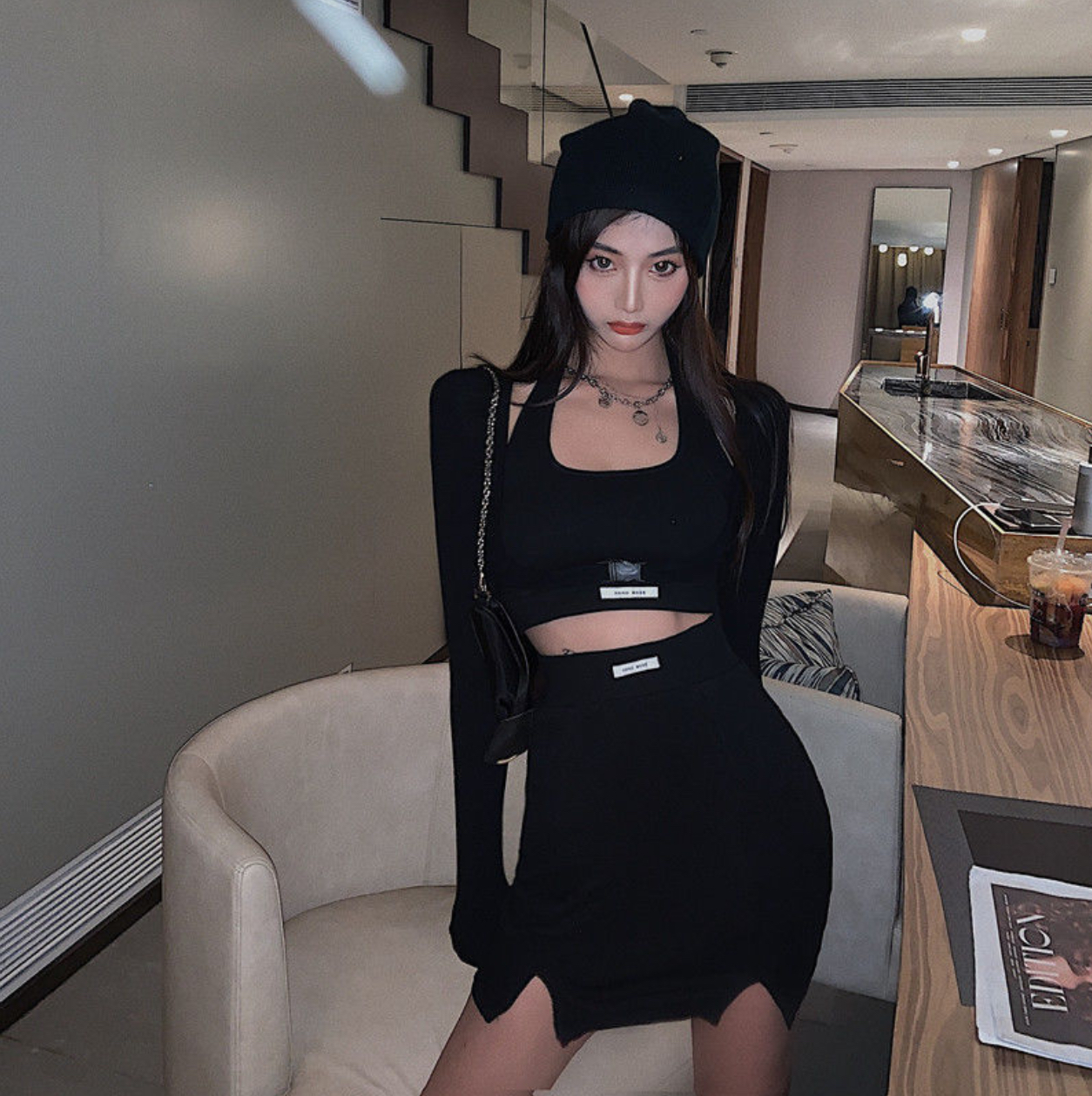 - Set gồm: quần short thun, áo croptop thun, áo khoác ngoài tay dài