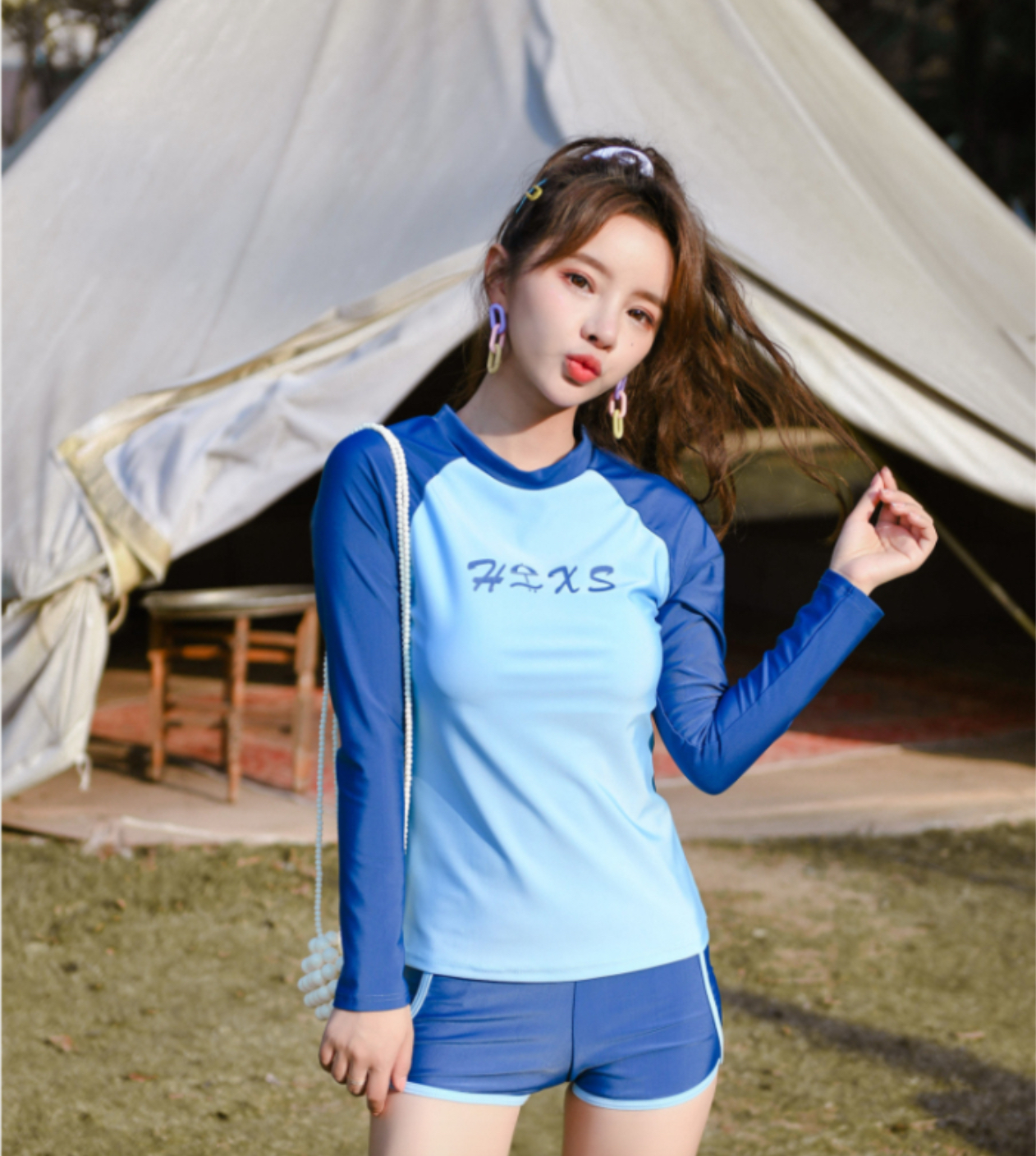 Set Đồ Bơi Nữ Rời Đùi Dài Tay Đi Biển Đi Bơi Chất liệu Polyester 95%, mật độ dệt vừa Áo có sẵn lớp đệm, hông áo có thể rút lên làm croptop cá tính