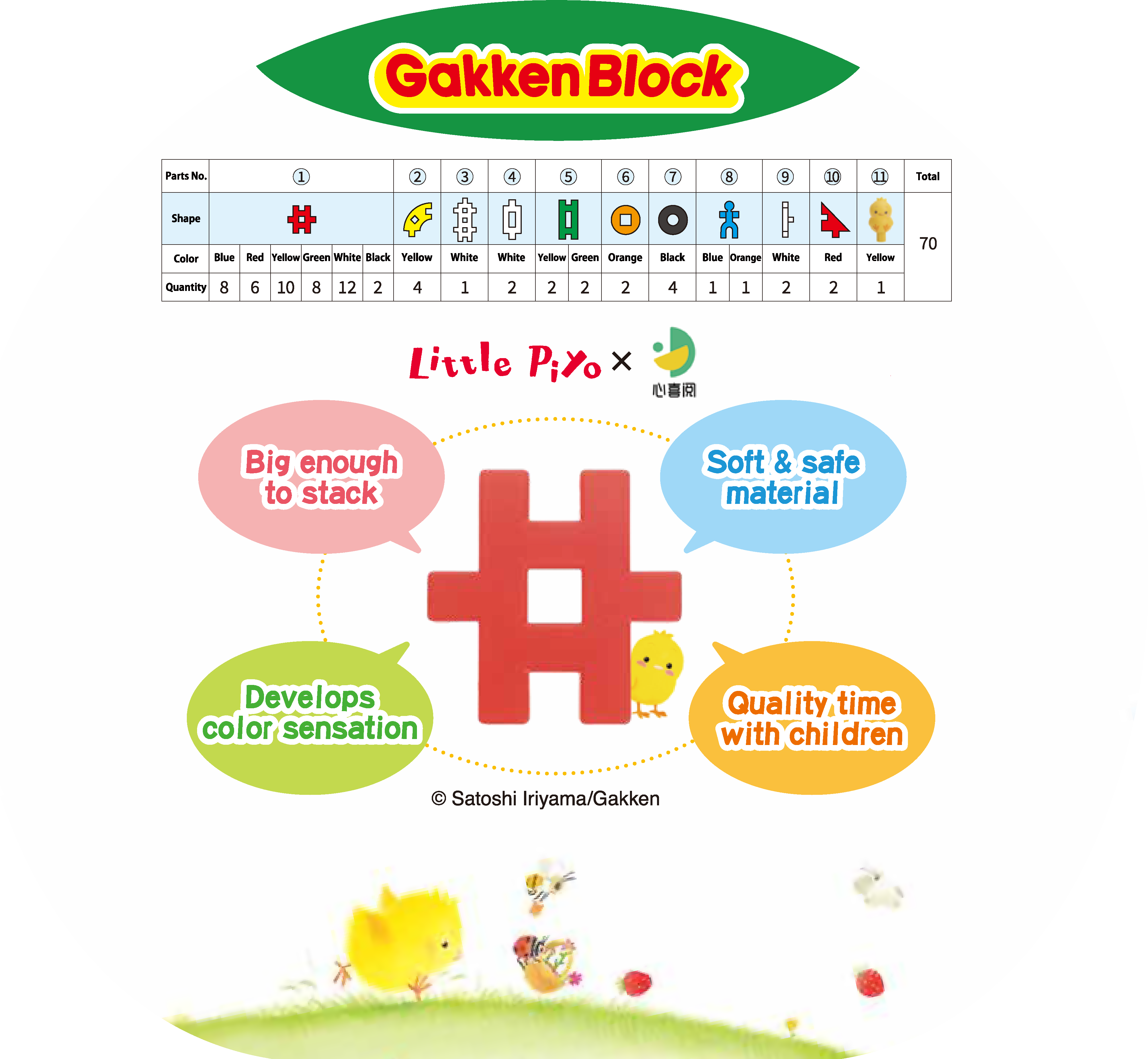 Bộ đồ chơi lắp ráp, lắp ghép mô hình thông minh Gakken Block - Little Piyo Block 70 chi tiết