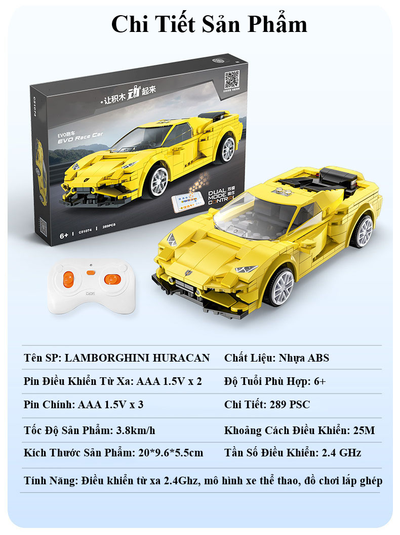 - Độ tuổi phù hợp : 6+ Bộ Đồ Chơi Lắp Ghép Xe Đua Thể Thao LAMBORGHINI HURACAN Với 289 Chi Tiết, Bộ Đồ Chơi Xếp Hình Xe Đua Thể Thao LAMBORGHINI HURACAN Với 289 PSC, Bộ Đồ Chơi Mô Hình Xe Đua Thể Thao Điều Khiển Từ Xa RC