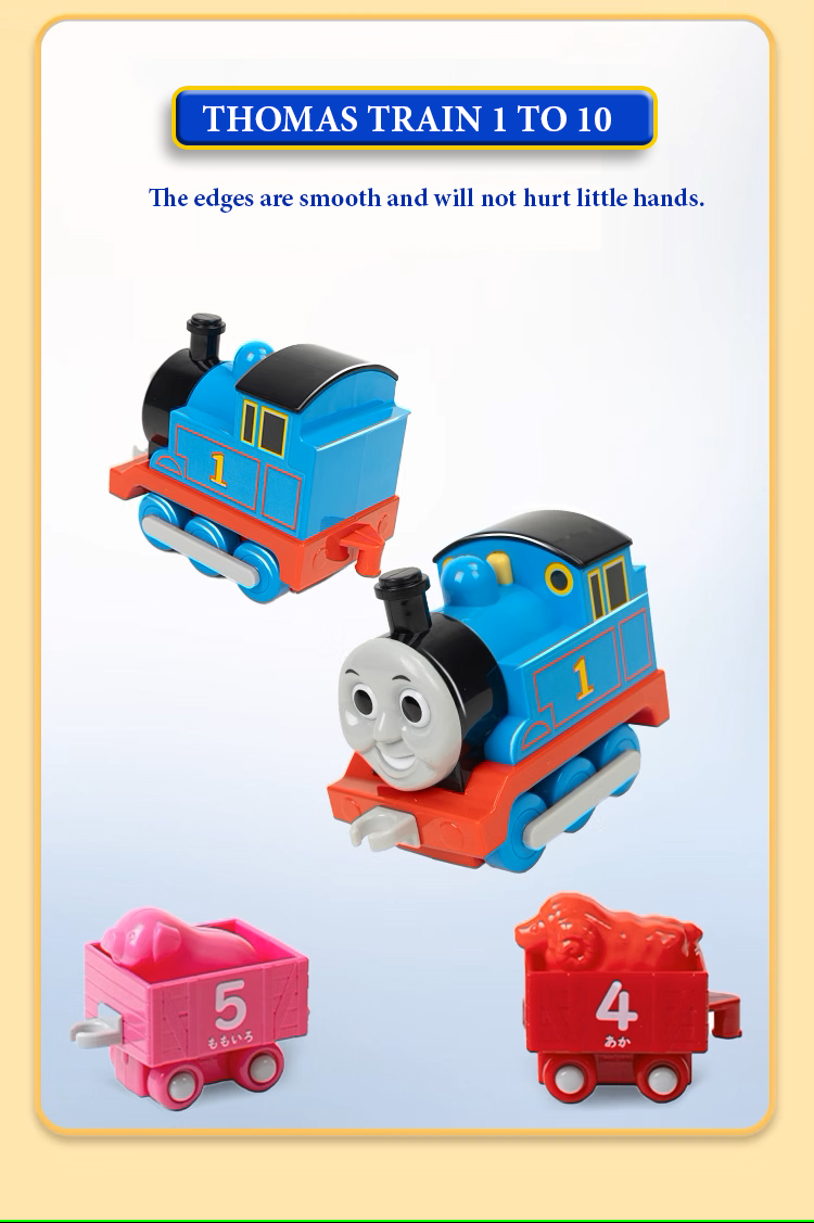 Bộ đồ chơi xe lửa Thomas - Đếm số từ 1 đến 10 Thương hiệu: Gakken Hongkong Xuất xứ thương hiệu: Nhật Bản Kích thước: 36 * 20 * 36 Chất liệu: Nhựa ABS. PP