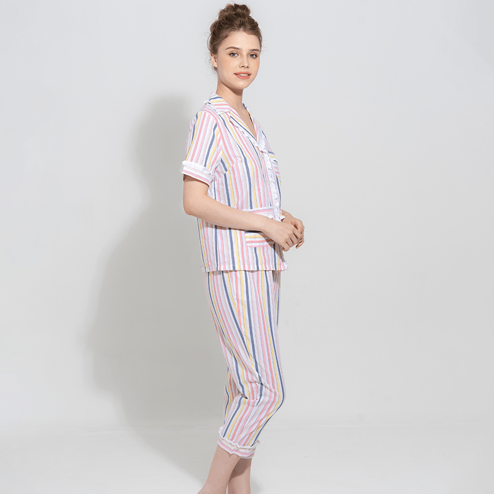 Đồ bộ nữ, đồ ngủ mặc nhà lửng tay cánh tiên vải lanh mềm ,mát BL 183 họa tiết dễ thương size 45-70kg. Chất: vải lanh (tole) 2 da mềm,mịn,mát, phù hợp với thời tiết