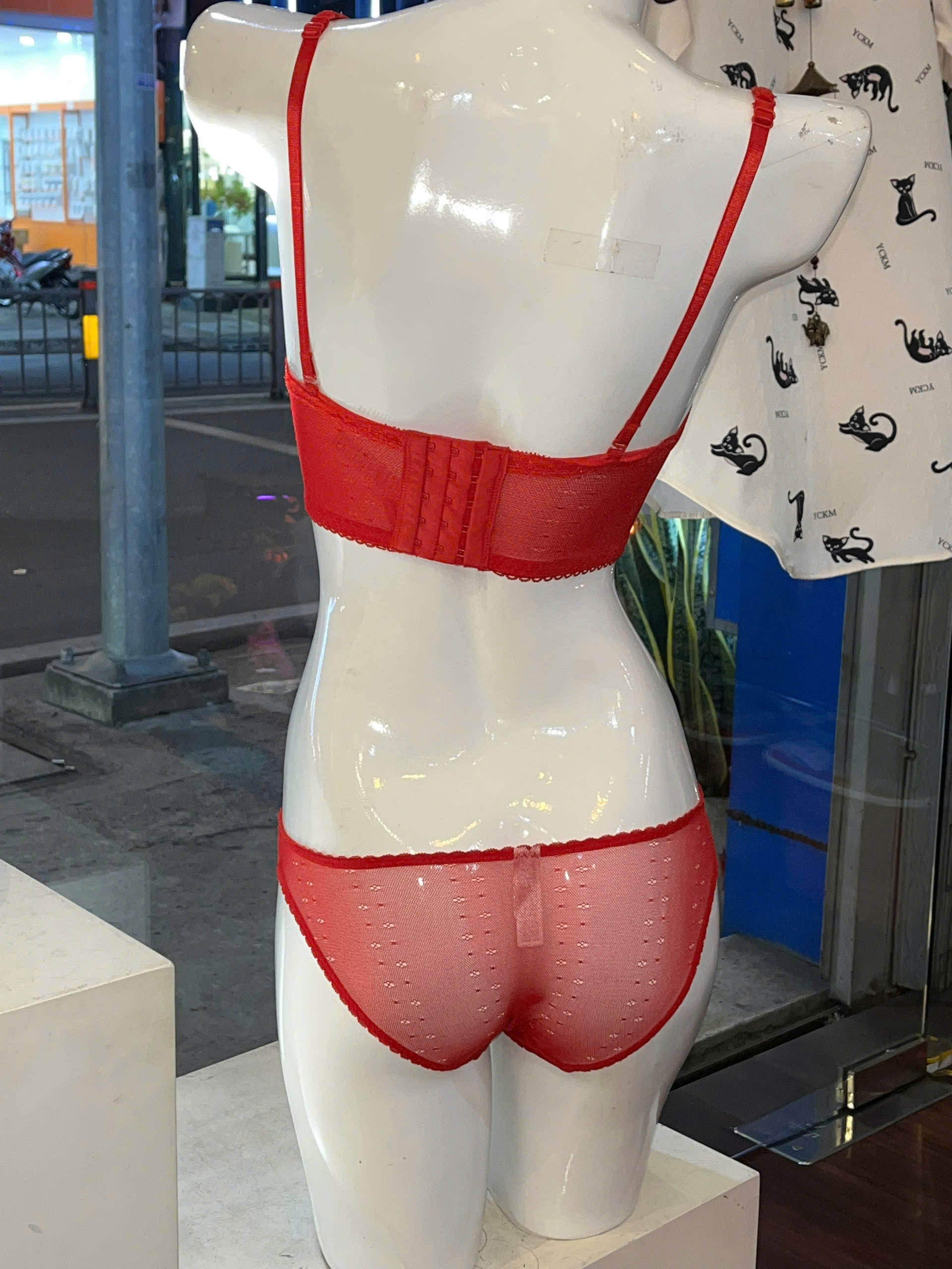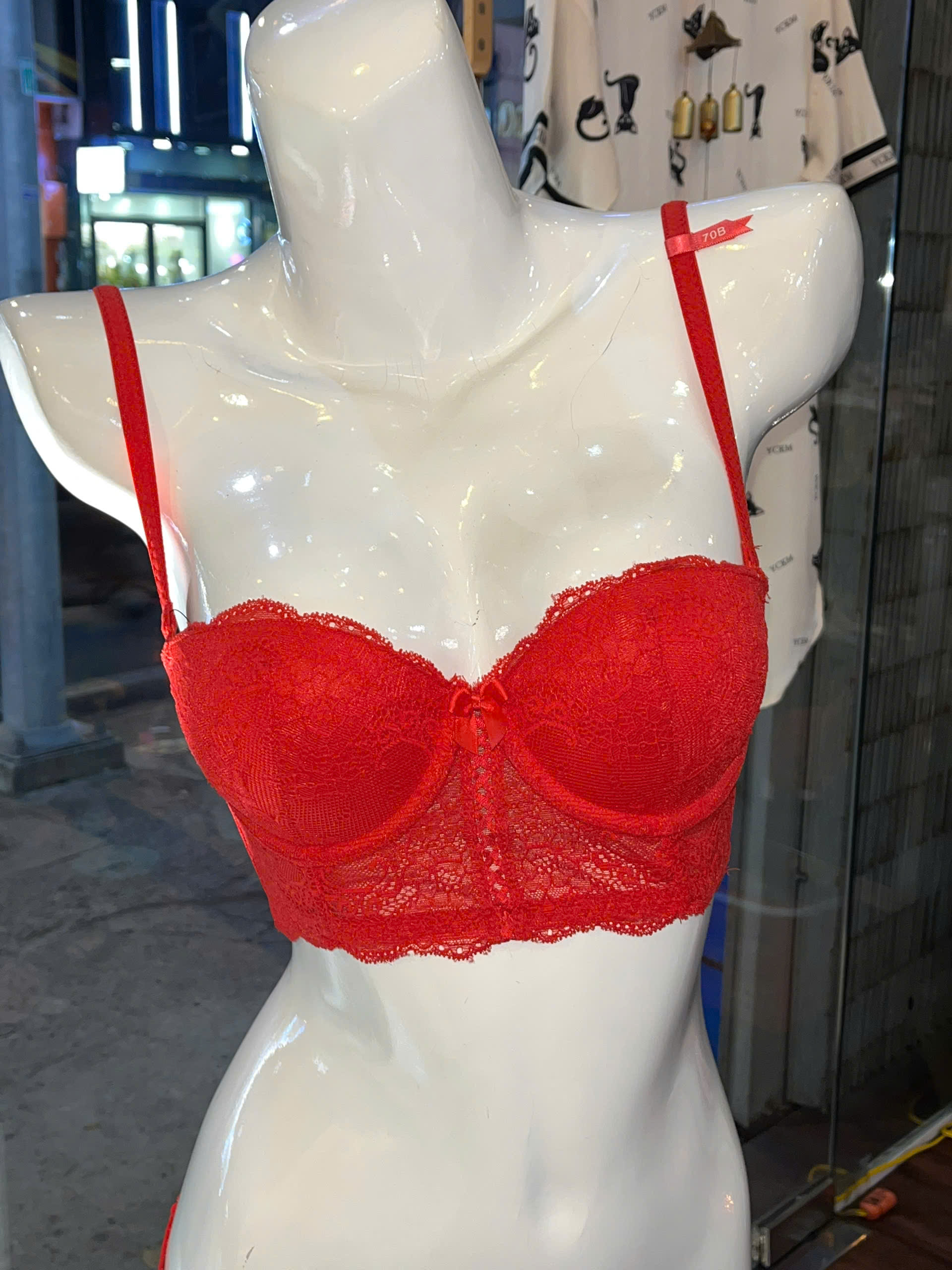 Thương hiệu: Sanny House Tên sản phẩm: Bộ đồ lót cúp ngang Chất liệu: ren cao cấp mềm mịn, co giãn, thấm hút tốt Kiểu dáng: gợi cảm, trẻ trung, hiện đại Màu: đỏ Size: