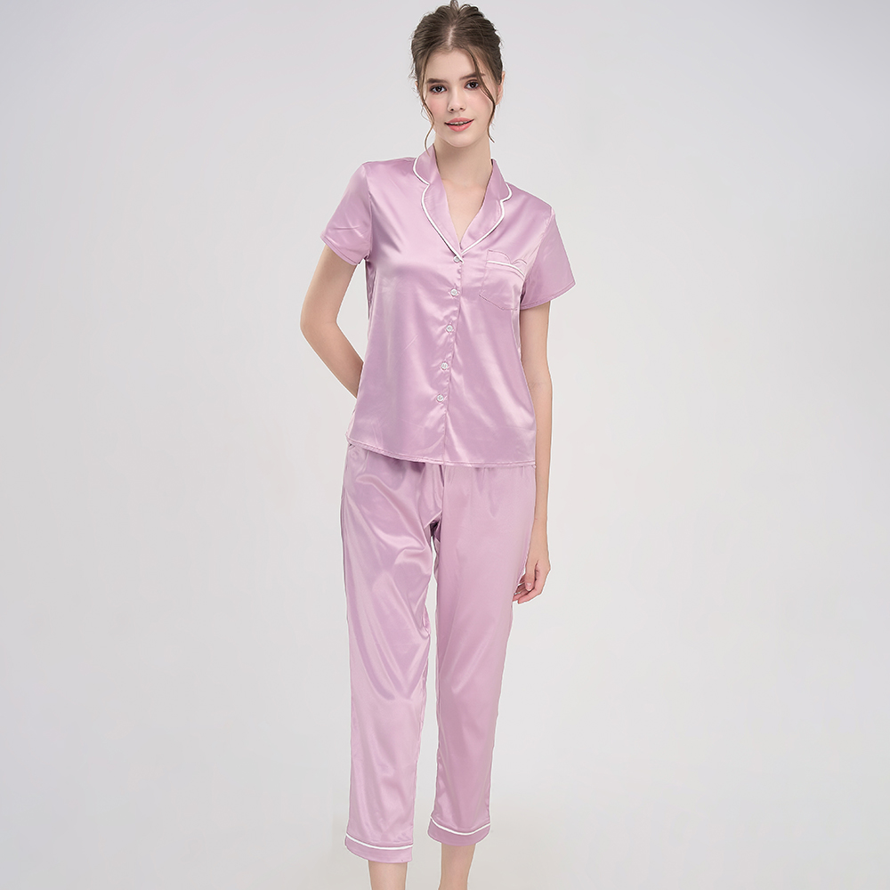 Đặc điểm nổi bật: - Bộ satin dài, cổ sen nhọn có phối viền nổi bật - Chất liệu satin - Dáng bộ đồ dài - Thiết kế và sản xuất bởi Vincy
