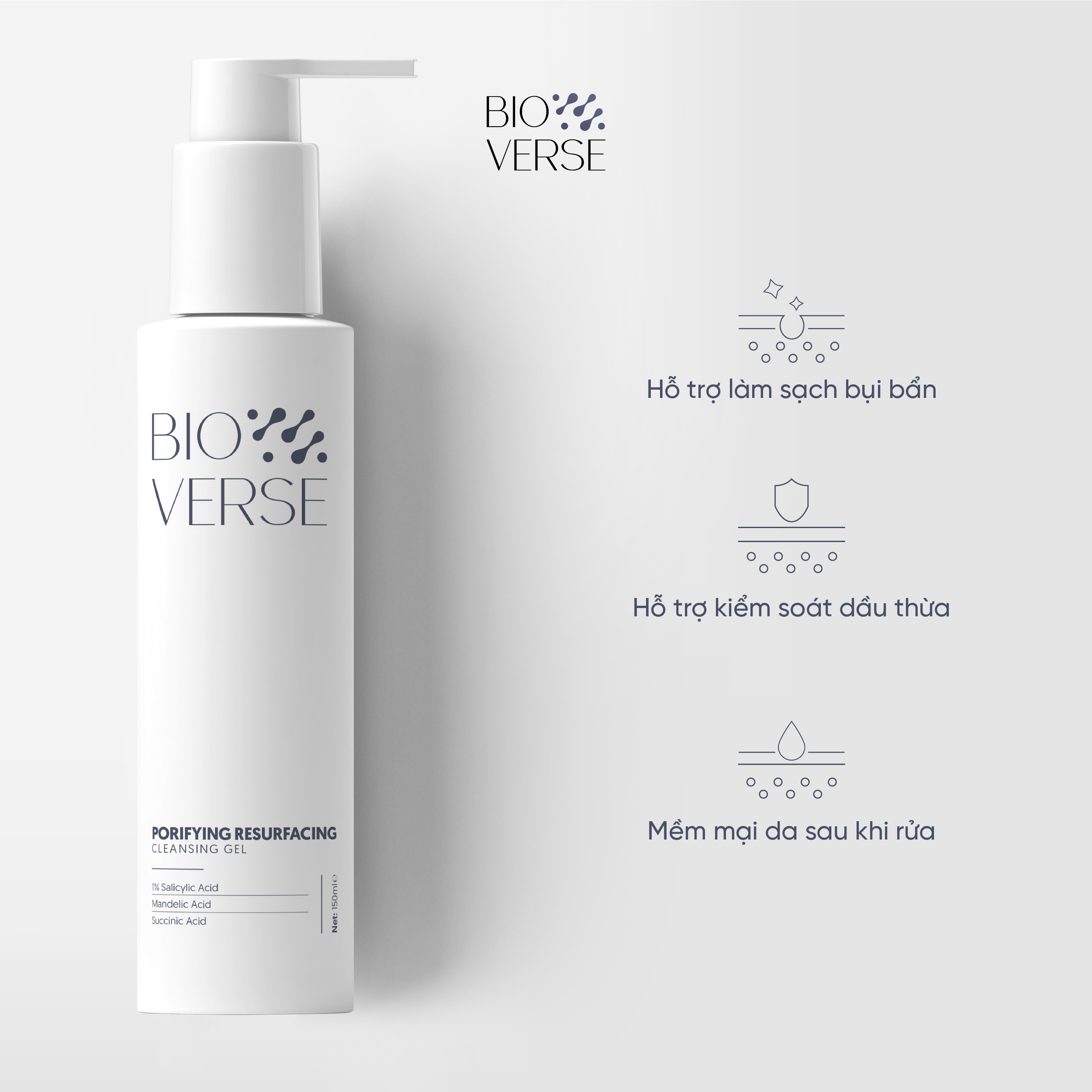 Mua tại TiktokBộ đôi làm sạch sâu & hỗ trợ ngừa mụn (Porifying Resurfacing Cleansing Gel + B351 Acne Clear up Serum) GIỚI THIỆU: Bộ đôi hỗ trợ làm sạch da, cải thiện mụn trứng cá & cải thiện các vấn đề da dầu mụn. Với công thức hỗ trợ làm sạch chứa 1% Salicylic Acid giúp điều tiết bã nhờn, kiểm soát dầu thừa, hạn chế mụn trứng cá thích hợp để rửa mặt mỗi ngày cho da mụn. Đồng thời bổ sung công thức hỗ trợ giảm mụn trứng cá gồm 5% Niacinamide & 1% Zinc PCA để làm dịu mụn sưng, hỗ trợ làm mờ thâm và hỗ trợ thúc đẩy làn da đều màu, khỏe khoắn. Combo gồm: