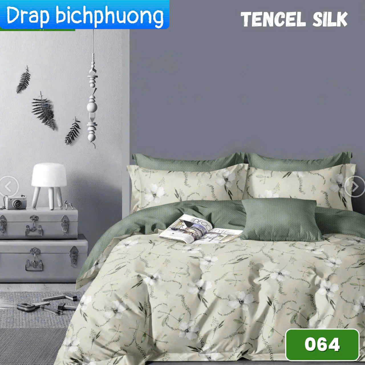 Chất liệu: Tencel Xuất xứ : Việt Nam Mô tả: Thiết kế hòa mình vào thiên nhiên đang là xu hướng của cuộc sống hiện đạị. Việc đem cây cối hoa lá vào trong phòng