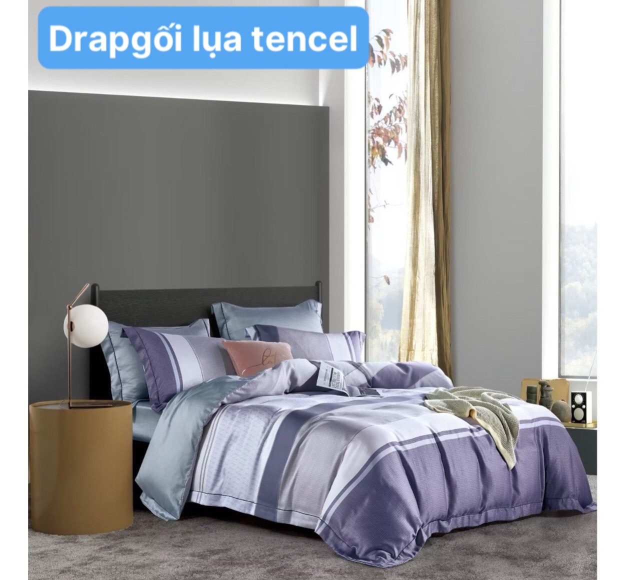 - BỘ DRAP MỀN TENCEL GỒM 5 MÓN: - 2 Vỏ gối nằm 50X70cm + 1 vỏ gối ôm 35x100cm • 1 ga { bọc nệm dưới 25 cm}+ 1 mền chần gòn 1m8 x