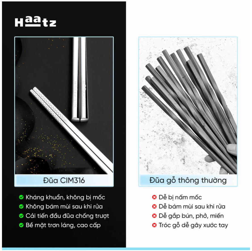 ✨Bộ Đũa inox 10 Đôi Haatz CIM316 - Đũa inox 316L Siêu Bền, An Toàn Cho Sức Khoẻ, Bảo Hành 24 Tháng