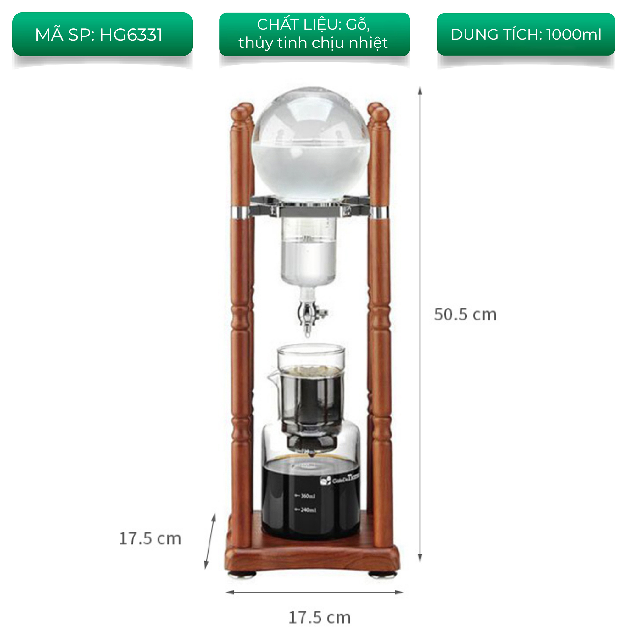 Phụ kiện thay thế cho tháp pha cfa phê đá lạnh Cold Drip Tiamo HG 2650 Thương hiệu: Tiamo Dung tích: 3500ml