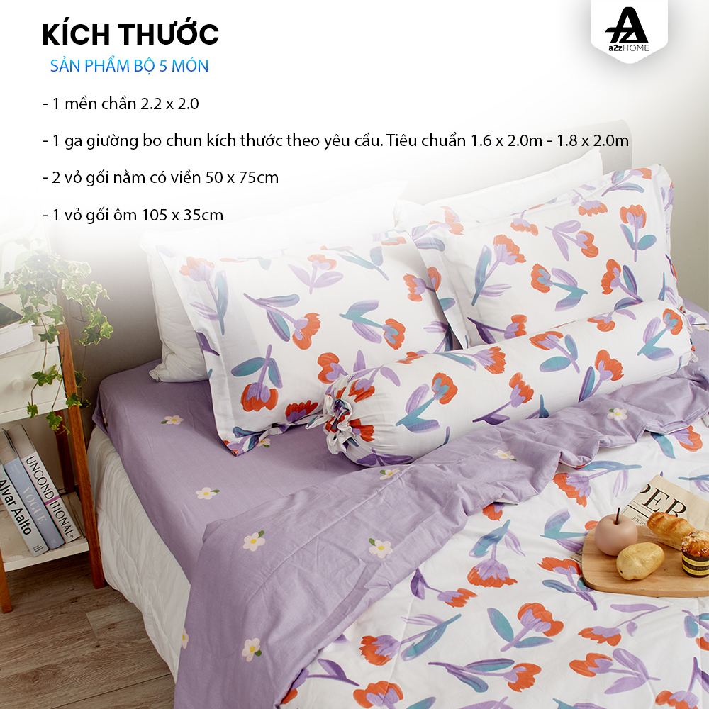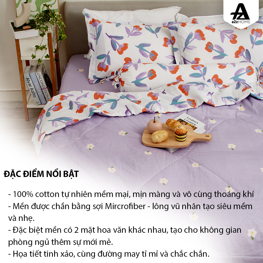 Mua tại TiktokBộ Ga Giường Mền Chần Bông 5 Món Sweet Flowers Mềm Mại 100% Cotton Tự Nhiên A2Z Home Họa tiết hoa rực rỡ đầy màu sắc phối cùng màu tím mộng mơ đem lại không gian tươi mới và rực rỡ sắc màu. Hãy cùng A2Z Home đón nhận mùa của nắng, dịu dàng mà gay gắt, rực rỡ như đang căng hết sức lực để làm bừng sáng không gian phòng ngủ qua bộ sưu tập Summer CHẤT LIỆU SẢN PHẨM
