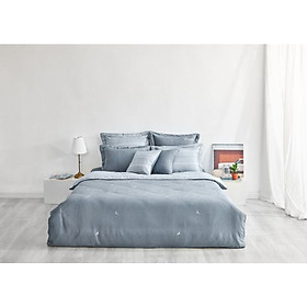 Bộ chăn ga này được kết hợp cả vải in và thêu. Họa tiết con hươu thật nhỏ được thêu điểm xuyết rải đều trên mặt chăn, tạo điểm nhấn cho bộ chăn ga không bị nhàm chán.Gam màu xanh ghi rất khéo léo tôn lên sự cuốn hút, nam tính và mạnh mẽ cho bộ sản phẩm này.