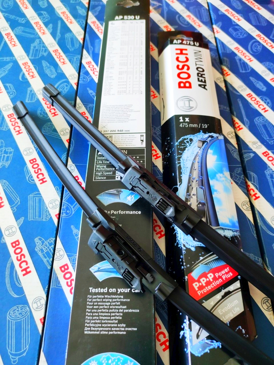 - Công nghệ Bosch P.P.P (Power Protection Plus) với lớp Graphite phủ bên ngoài lưỡi cao su giúp lau sạch hơn, chuyển động mượt mà không gây tiếng động, tăng cường khả năng chịu nhiệt