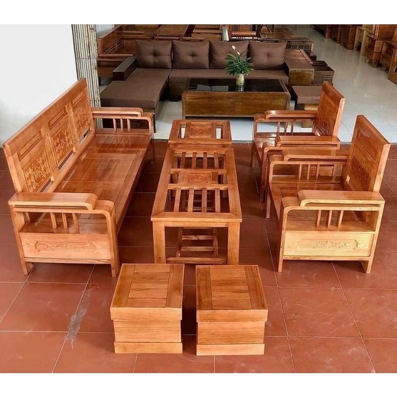 Bộ Ghế Gỗ Phòng Khách - Tay Hai Tầng được làm bằng gỗ sồi tự nhiên 100%. Bộ gồm 6 món như hình: 1 văng dài 1m85 2 ghế đơn 80cm 1 bàn 50x110cm 1