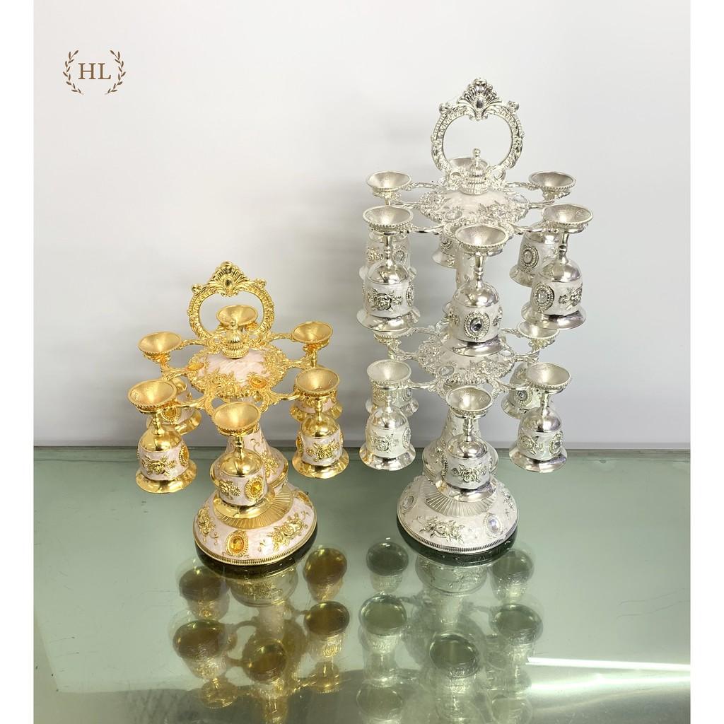 ✨BỘ GIÁ TREO KÈM LY HỢP KIM HOẠ TIẾT HOA VĂN HOÀNG GIA | LY HỢP KIM TÂN CỔ ĐIỂN KTV PHONG CÁCH VƯƠNG QUYỀN