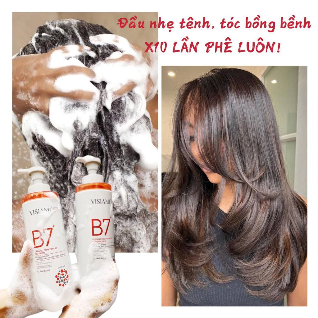 ✨BỘ GỘI XẢ DƯỠNG TÓC ORGARNIC BƯỞI VISIAMI B7+ GRAPEFRUIT SHAMPOO AND CONDITIONER 780MLX2 giảm rụng, mọc tóc nhanh cho tóc thưa mảnh khô