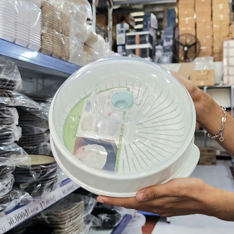 THÔNG TIN CHI TIẾT Chất liệu: nhựa PP an toàn Kích thước: đường kính ngoài gồm tay cầm là 28cm, chiều cao 4,5cm Đường kính lọt lòng khay là 23cm