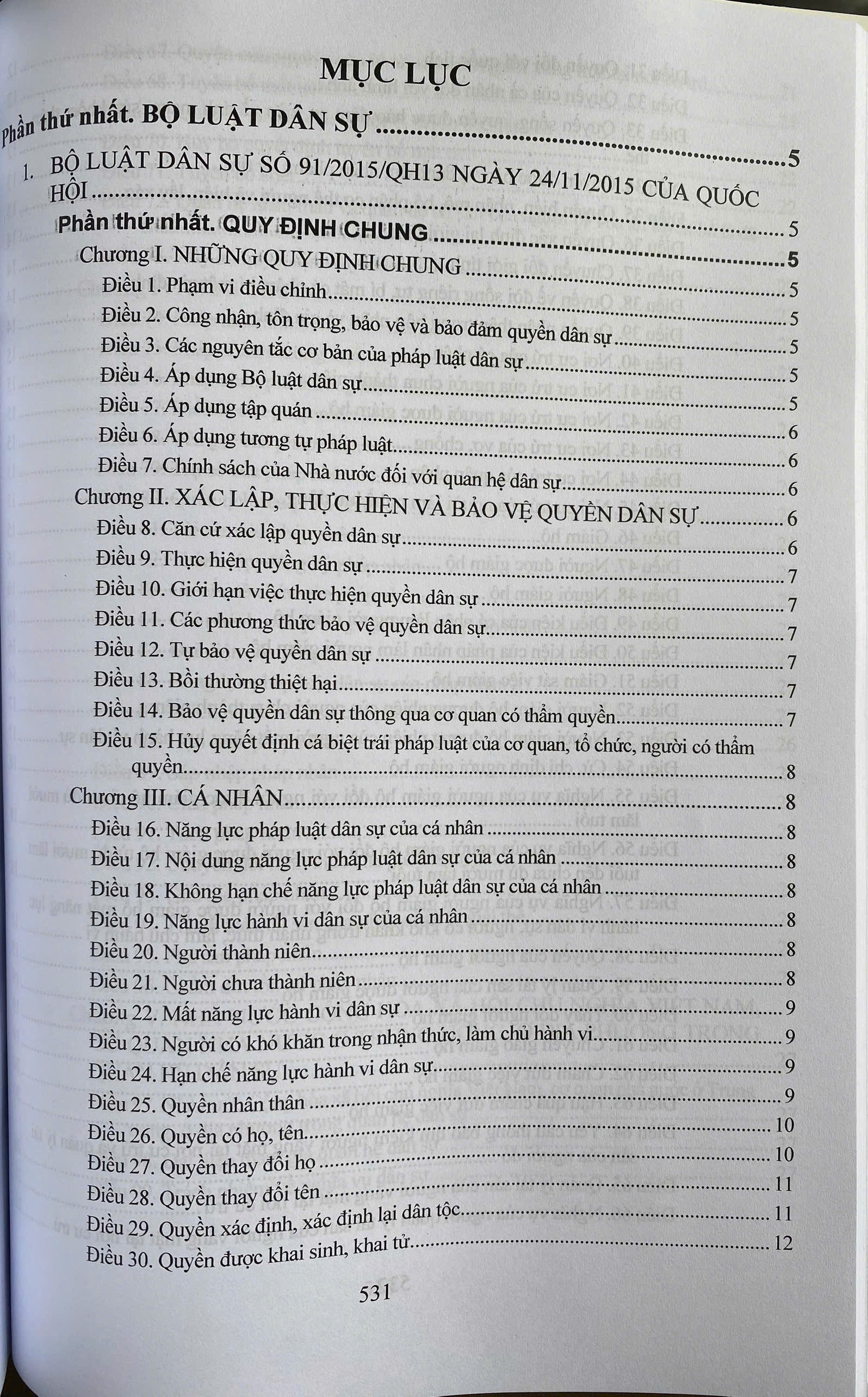 Phần I: BỘ LUẬT DÂN SỰ ( Luật số 91/2015/QH13 )