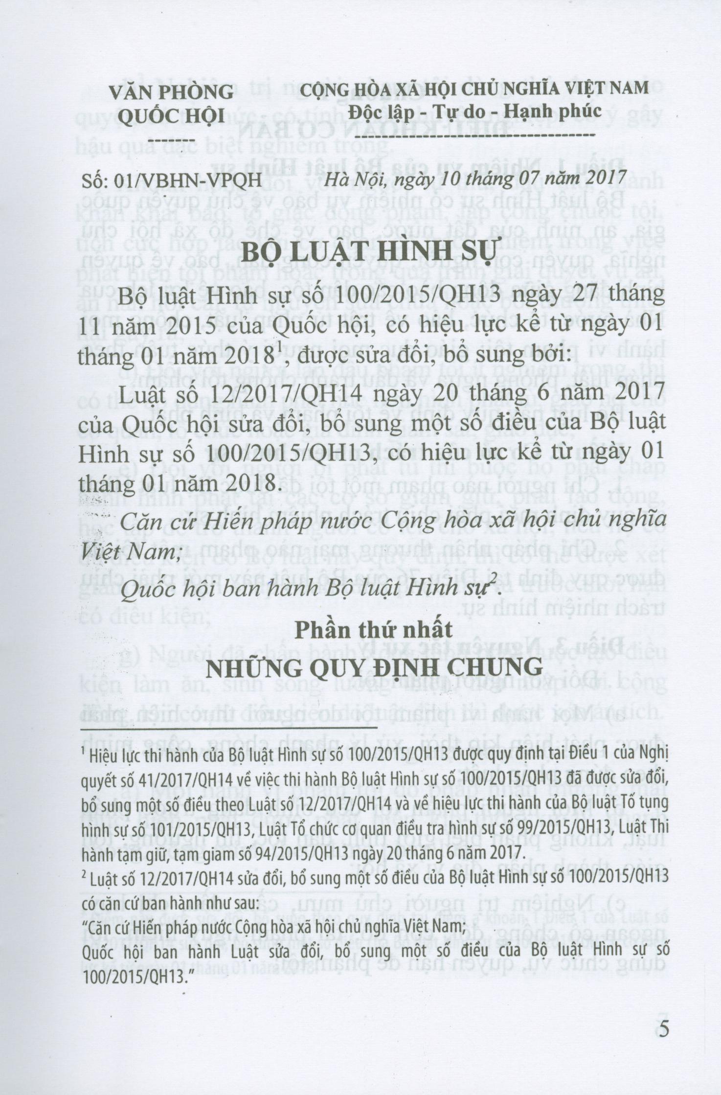 Số: 01/VBHN-VPQH Hà Nội, ngày 10 tháng 07 năm 2017 Cuốn 1: Bộ luật Hình sự năm 2015 sửa đổi, bổ sung 2017 (NXB Công an nhân dân) Tác giả: Nhiều tác giả NXB lao