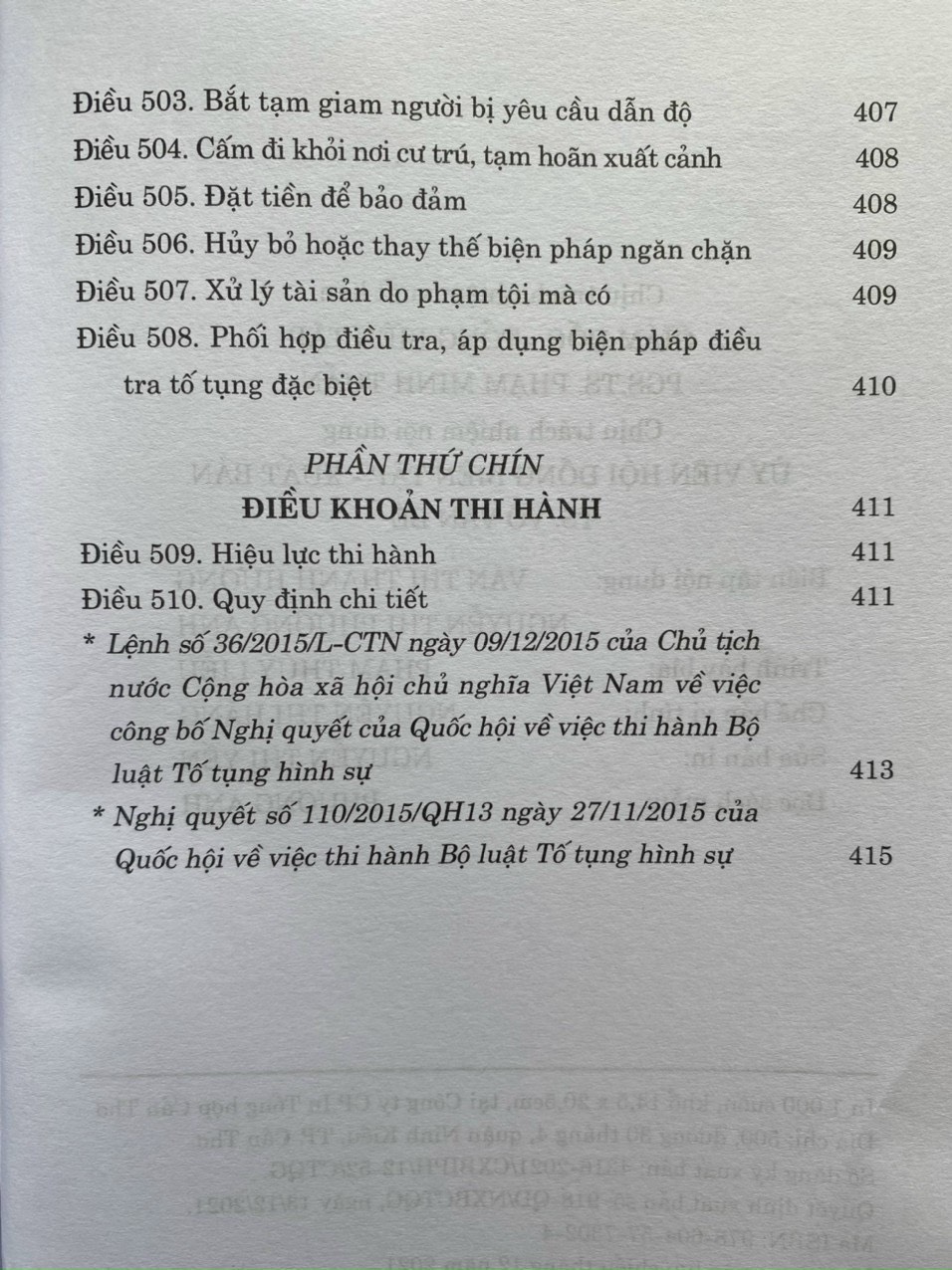 Phiên bản Bộ luật tố tụng hình sự năm 2015 (đính kèm 4 trang nội dung chỉnh sửa năm 2021), nên bạn đọc cân nhắc khi mua tham khảo Bộ luật tố tụng