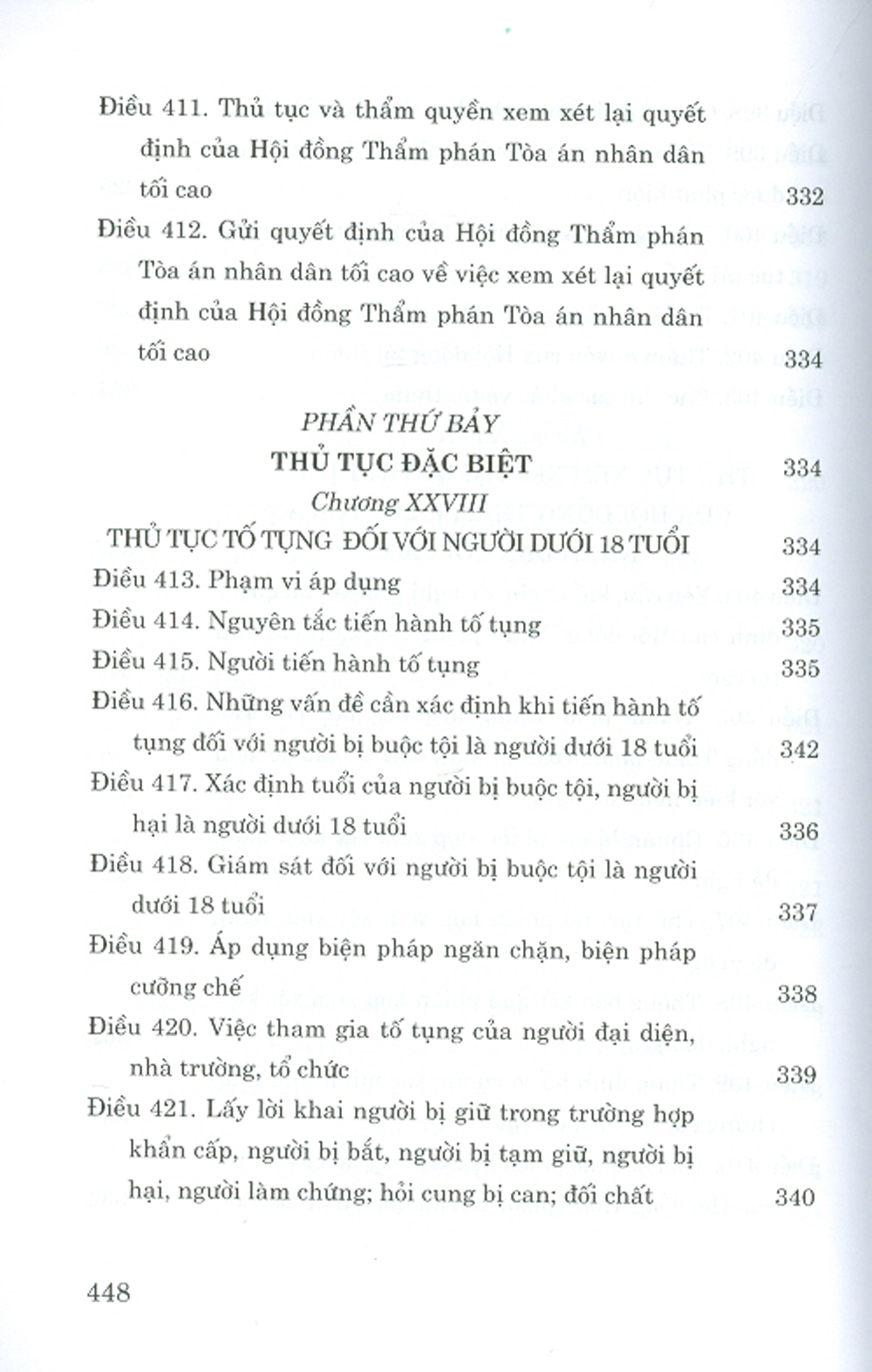Cuốn sách gồm 9 phần, 510 điều, quy định trình tự, thủ tục tiếp nhận, giải quyết nguồn tin về tội phạm, khởi tố, điều tra, truy tố, xét xử và một số thủ tục