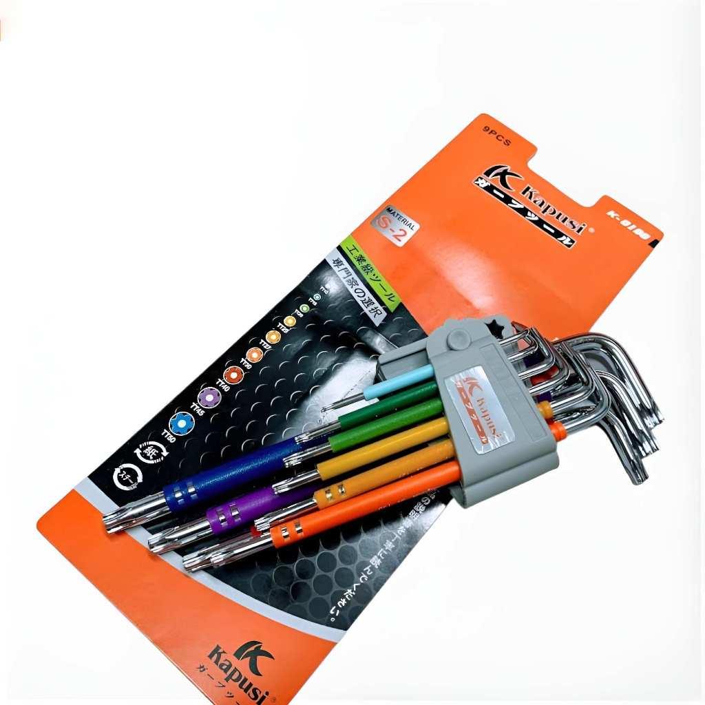 ✨Bộ lục giác bi, bộ hoa thị đầu bông mai có lỗ thép nâu S2 dài Nhật Kapusi JAPAN 9 chi tiết