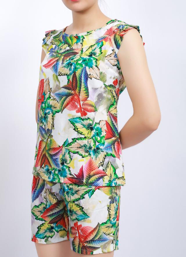 ✨Bộ mặc nhà lanh (tole) Vicci BS3D.069.16 quần short vải Thái 3D cao cấp họa tiết lá nhiều màu