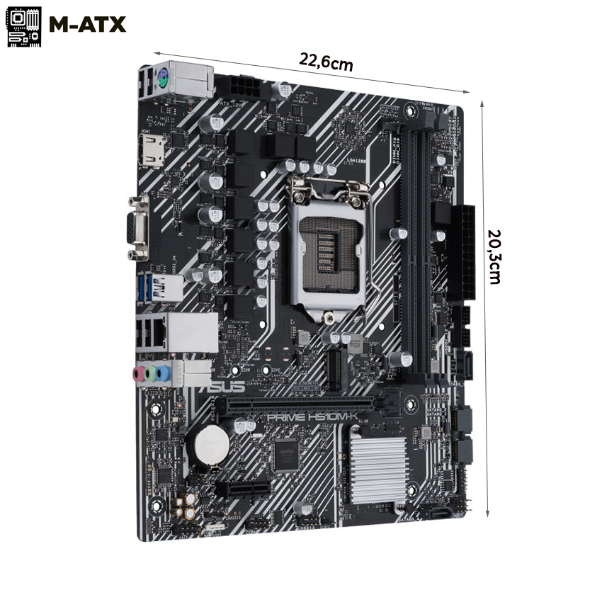 BỘ XỬ LÝ Hỗ trợ 10 Gen Intel Core Processors, 11 Gen Intel Core Processors, Pentium vàng và Celeron xử lý CHIPSET Bộ chip Intel H510 KÝ ỨC - 2 khe cắm bộ nhớ DDR4, hỗ trợ lên đến 64GB