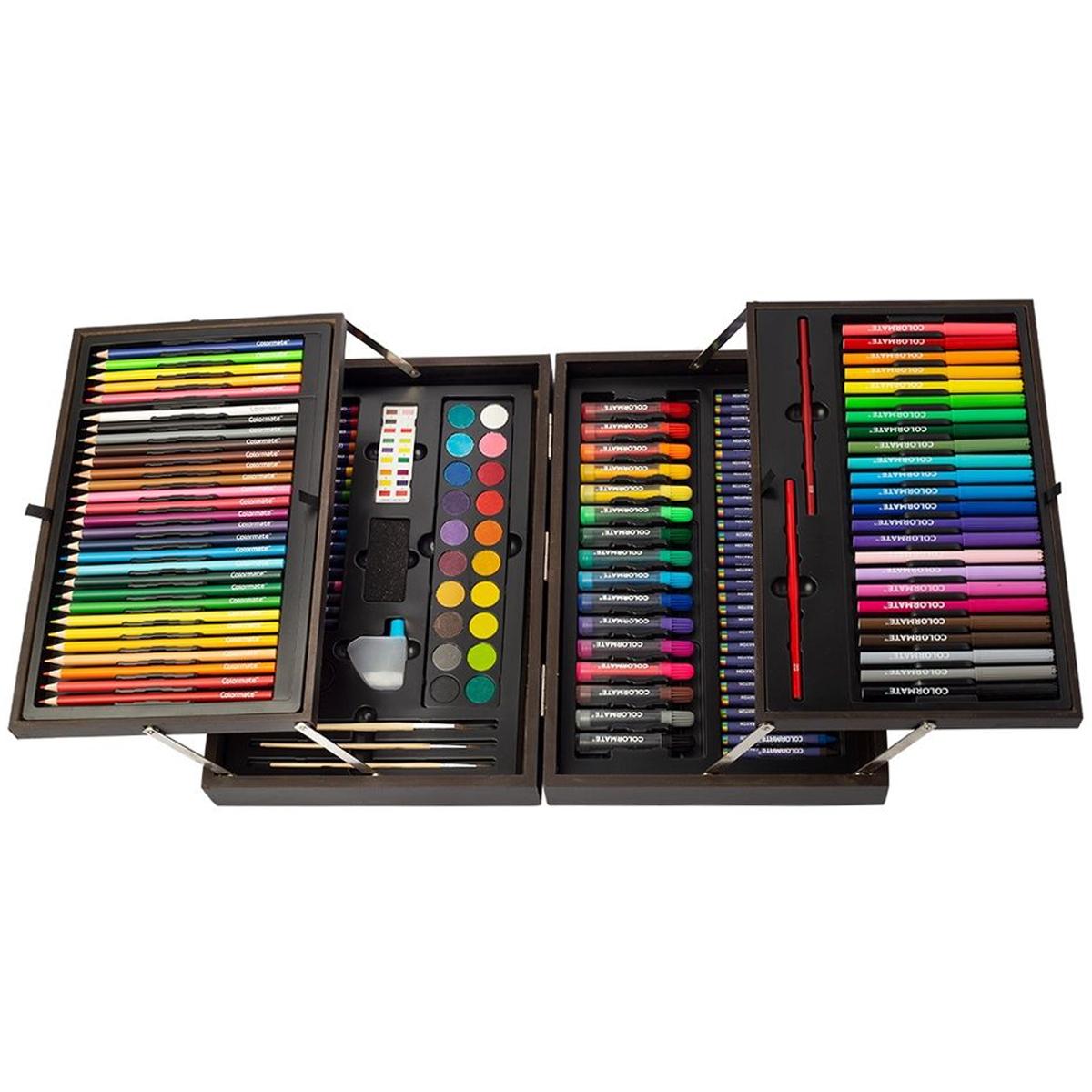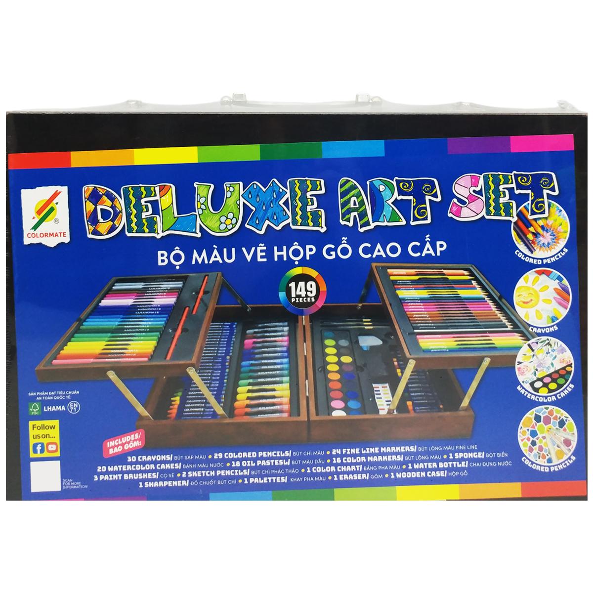 Bộ Màu Vẽ Hộp Gỗ Cao Cấp - Colormate 149WP (149 Chi Tiết) - Màu trong bút lông không lem cho các bé dễ dàng sử dụng. - Bút sáp và bút sáp dầu cho