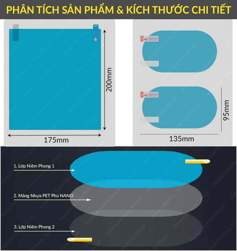 - MÔ TẢ SẢN PHẨM: ✮ Chất liệu: Film nhựa PET Tráng NANO ✮ Kích thước: 200 x 150 mm (Dán Kính Xe) 135 x 95 mm & 100 x 135 cm (Dán Gương) 160 x 350 mm (Dán Gương Xe Tải) ***Note: Gói vải không dệt tẩm cồn shop giao màu túi ngẫu nhiên