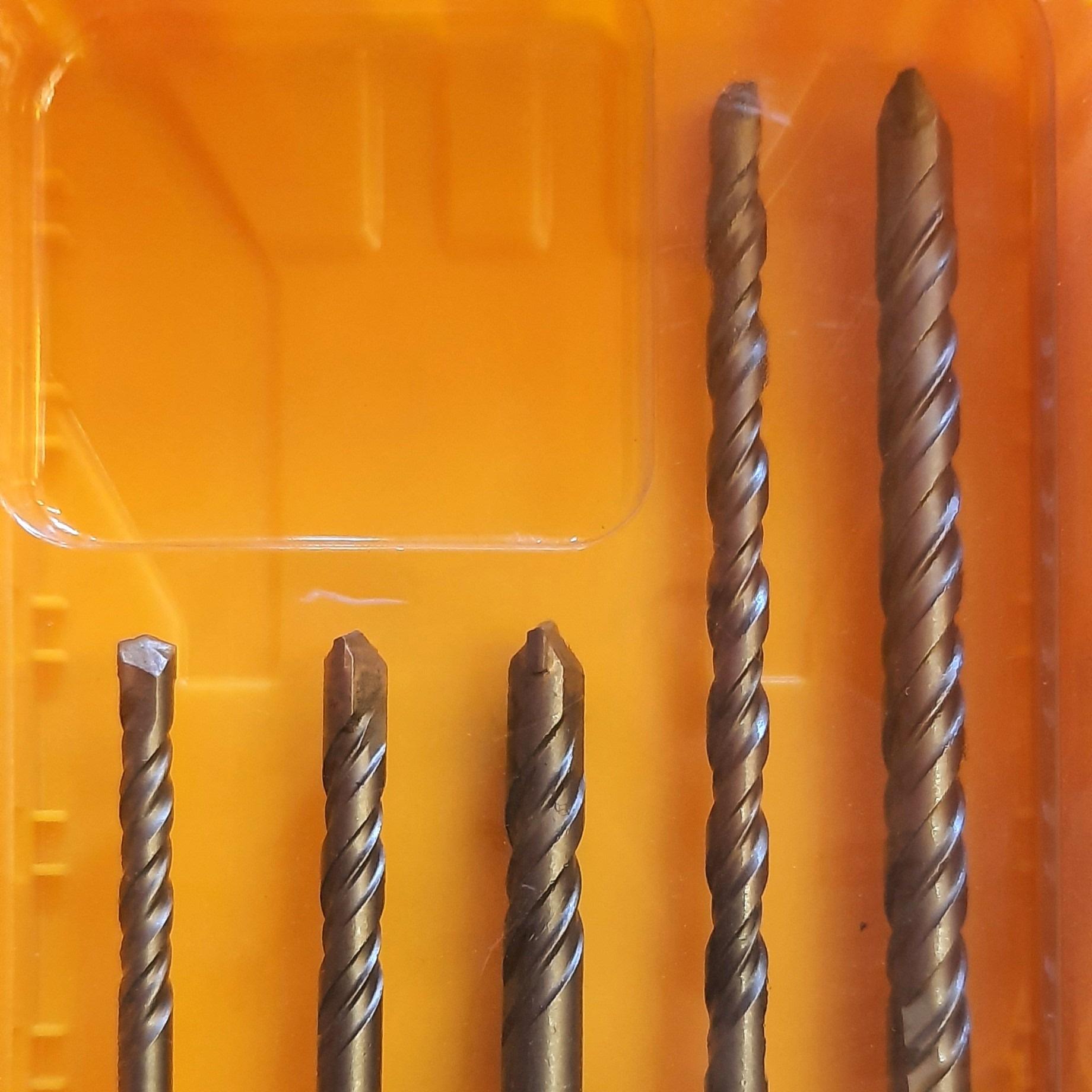- Bộ 9 mũi khoan SDS Plus: 5X110mm, 6X110mm, 8X110mm, 8X160mm, 10X160mm, 12X160mm, 14X160mm, 16X160mm