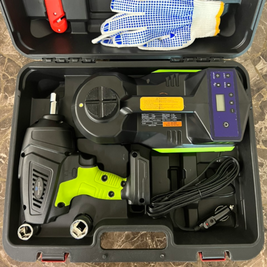 Bộ nâng kích gầm điện, kiêm máy bơm lốp và máy siết ốc ô tô đa năng 3 trong 1