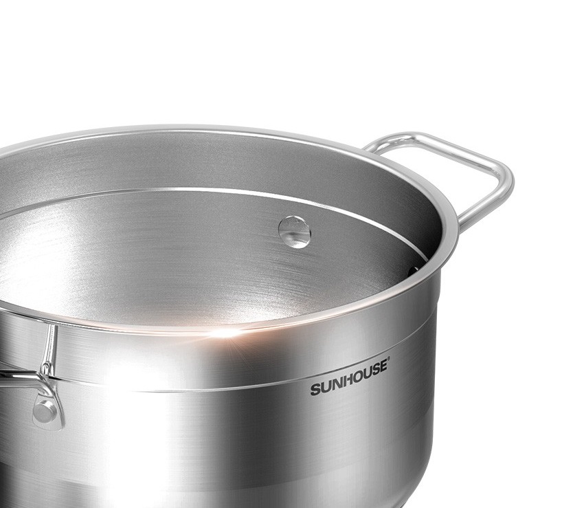 Bộ nồi inox 5 đáy Sunhouse SHG669 với thiết kế hiện đại, sang trọng cùng chất liệu cao cấp, và công năng nổi bật, đáp ứng mọi nhu cầu nấu nướng của gia đình, hứa hẹn giúp bạn có những phút giây nấu nướng hạnh phúc trong căn bếp thân yêu.