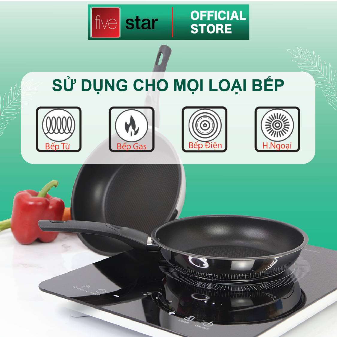 ✨Bộ Nồi Chảo 3 Đáy Inox 430 Cao Cấp Fivestar Standard 6 món nắp kính , tặng 5 muỗng ăn