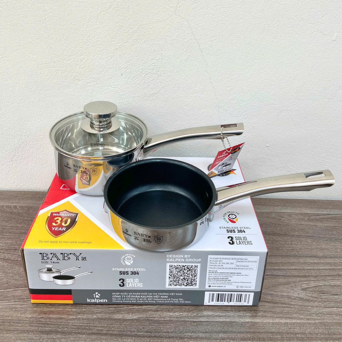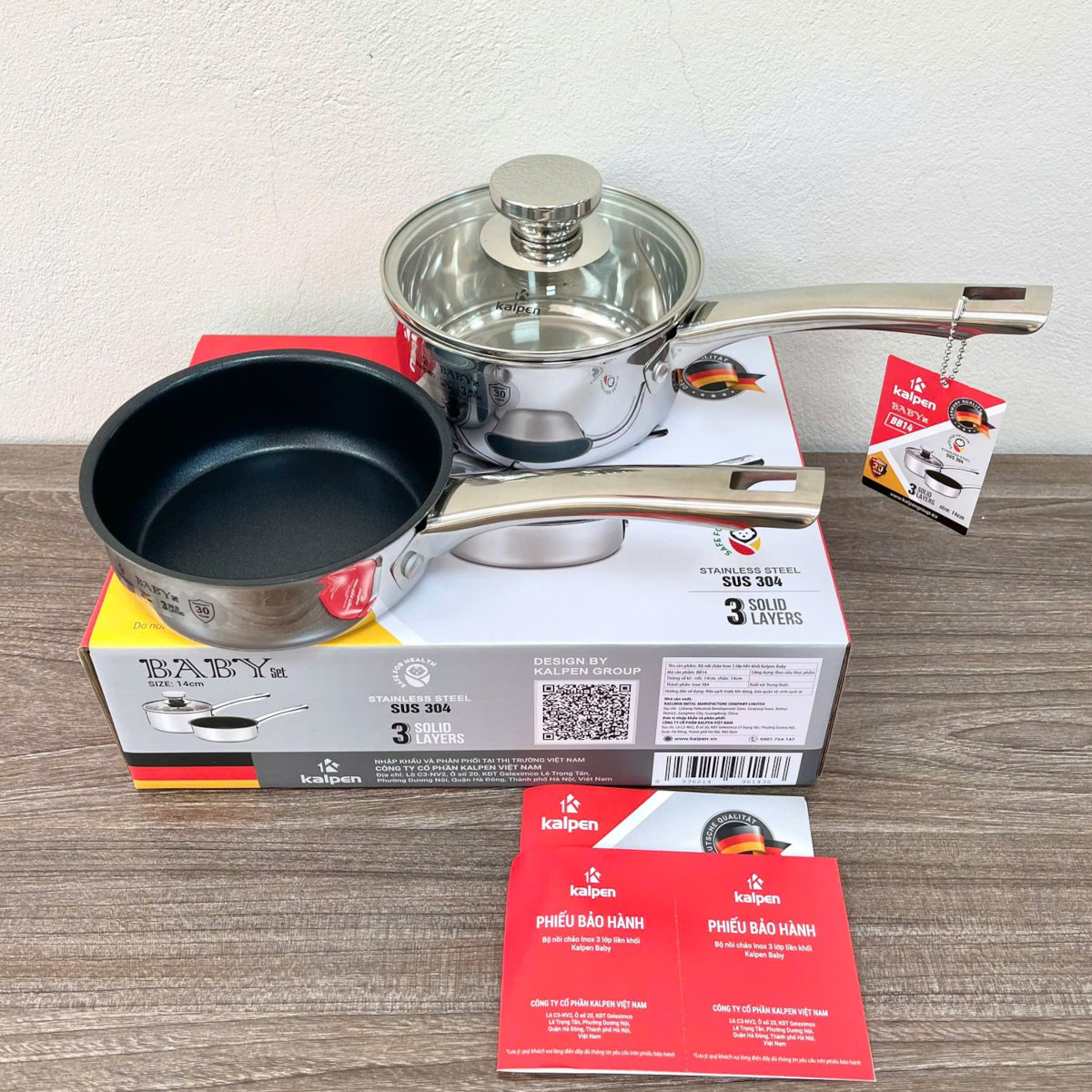 Tên sản phẩm: Bộ nồi chảo inox 3 lớp liền khối Kalpen Baby BB14