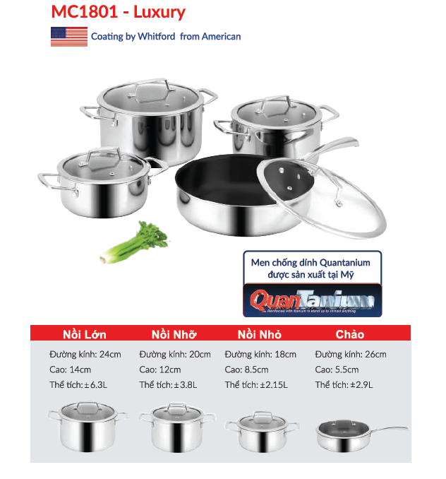 Vì vậy, sản phẩm chảo trong bộ MC1801 rất an toàn, bền chắc và có tuổi thọ cao.