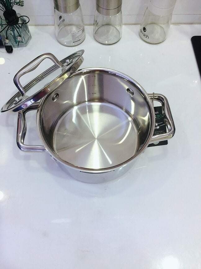 Bộ nồi gồm 4 nồi:  Nồi nhỏ 16 cm để kho, hai nồi 18 cm và 20 cm trung để nấu canh. Nồi lớn 24 cm luộc gà nguyên con khoảng 1.5 – 1.8 kg.