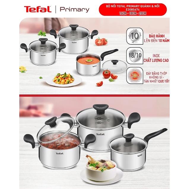 ✨Bộ nồi Tefal Primary 16/18/20cm (quánh 16cm-1.5L,nồi 18cm-2.2L, nồi 20cm-3L) E308S674 - Hàng Chính Hãng