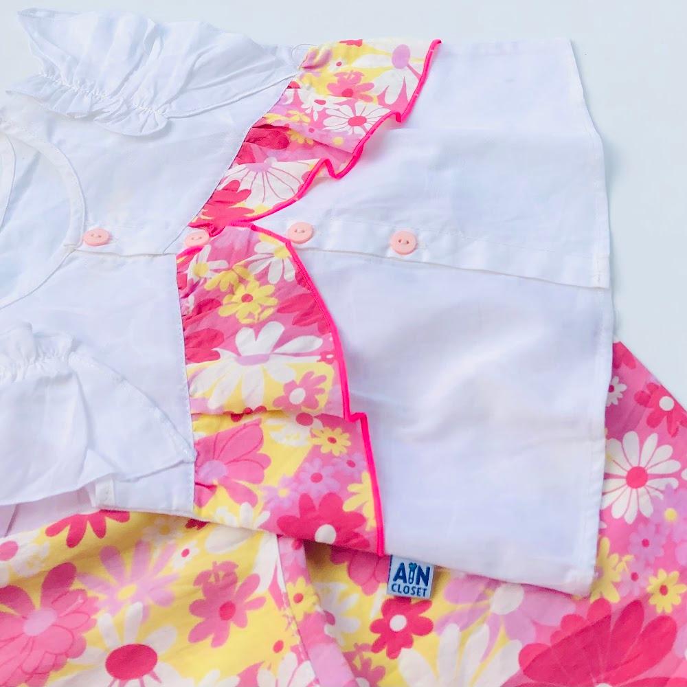 ✨Bộ quần áo lửng trắng bé gái quần họa tiết hoa hồng - AICDBGQ3VNF0 - AIN Closet