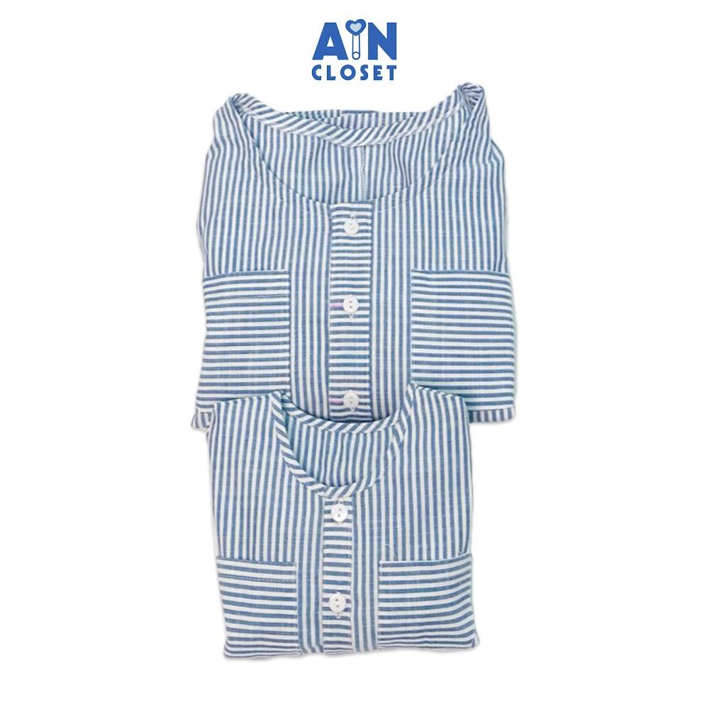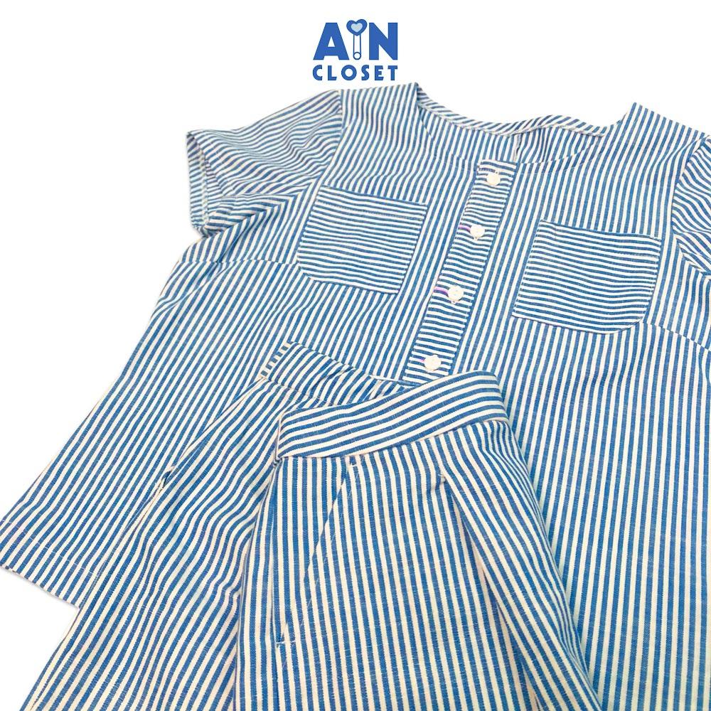 ✨Bộ quần áo ngắn cho mẹ Kẻ sọc xanh linen cotton - AICDMERIPDHT - AIN Closet