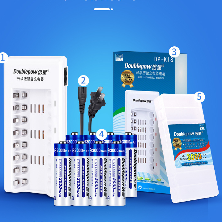 ✨Bộ sạc 8 pin tự ngắt TẶNG kèm hộp 8 pin Dowblepow 3000mAh-Hàng chính hãng Doublepow