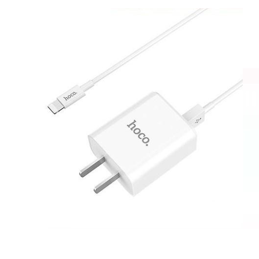 Bộ sạc 2.4A Hoco DC13 chuôi dẹt 1 cổng Usb kèm dây sạc Type-C dài 1M cho Android Hoco DC13 có chân cắm US dòng sạc 2.4A và 1 cổng USB đạt tiêu