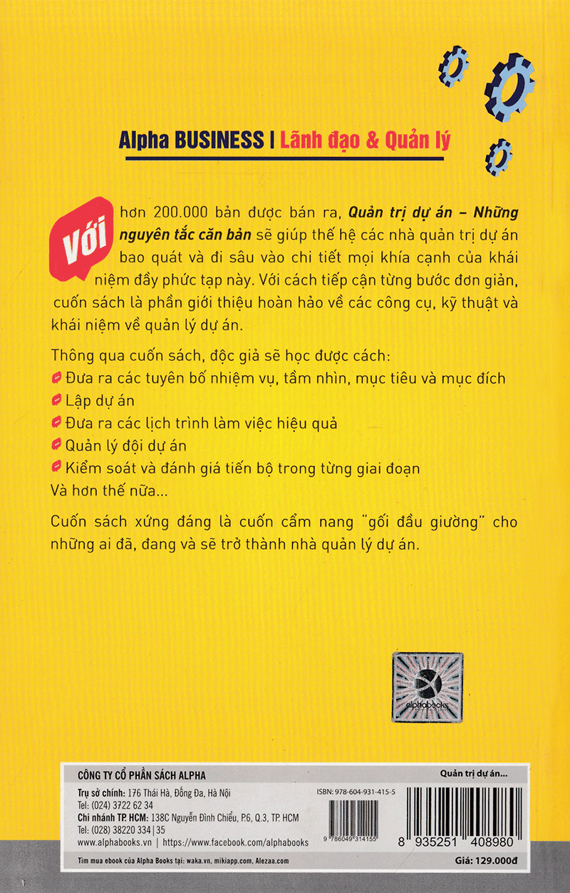 Quản trị dự án là việc áp dụng các kiến thức, các kỹ năng, các công cụ và kỹ thuật để lên kế hoạch hành động nhằm đạt được các yêu cầu của dự án. Với cách tiếp cận từng bước đơn giản, cuốn sách là lời chỉ dẫn hoàn hảo về các công cụ, kỹ thuật và khái niệm quản trị dự án. Người đọc sẽ học cách xây dựng báo cáo chiến lược, tầm nhìn, mục tiêu, đối tượng, lập kế hoạch dự án, lập thời khóa biểu công việc, nắm được cách phân tích doanh thu, quản lý đội dự án, điều khiển và đánh giá tiến độ ở từng giai đoạn.