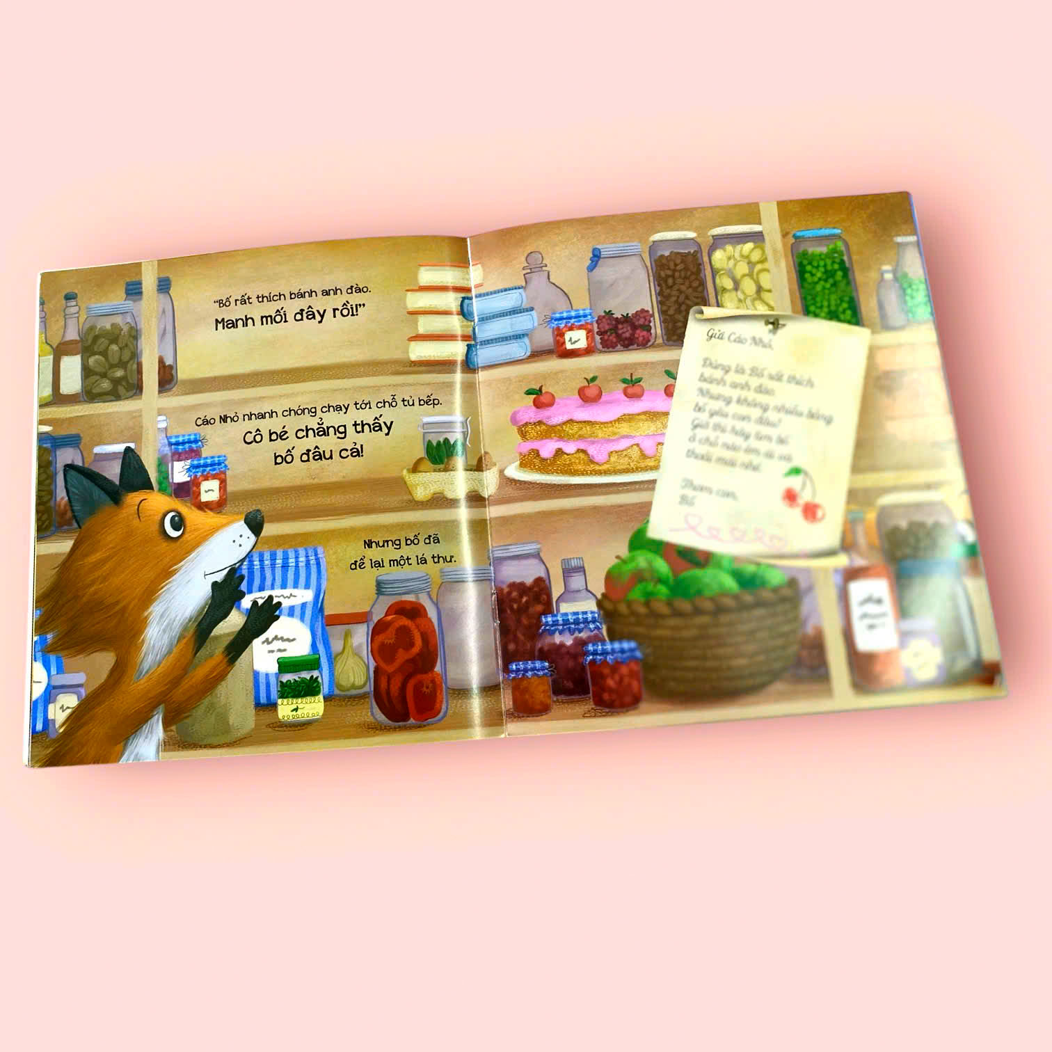 "Đúng rồi! Bố rất thích bánh anh đào!", Cáo Nhỏ reo lên và vội vã chạy đến tủ bếp. Nhưng, bố đâu rồi?