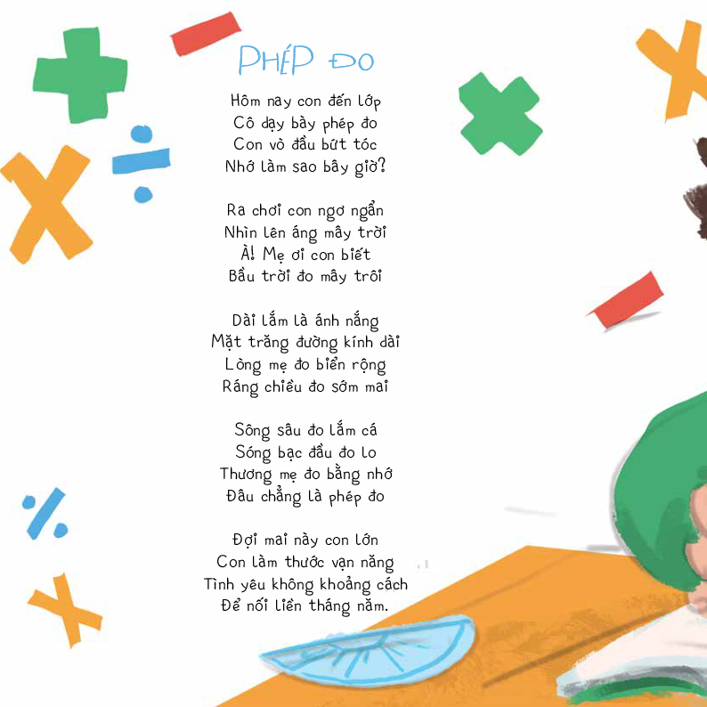Tập thơ nằm trong Bộ “Vần điệu cho em” của NXB Trẻ - với lời thơ và minh họa đầy sắc màu sinh động (họa sỹ minh họa: Phan Hồng Đức) – chia sẻ mong muốn cùng độc giả lan tỏa thông điệp, dựa trên cái hay cái đẹp của ngôn ngữ thơ ca, để gửi đến trẻ em những điều tinh tế nhất của cuộc sống này.
