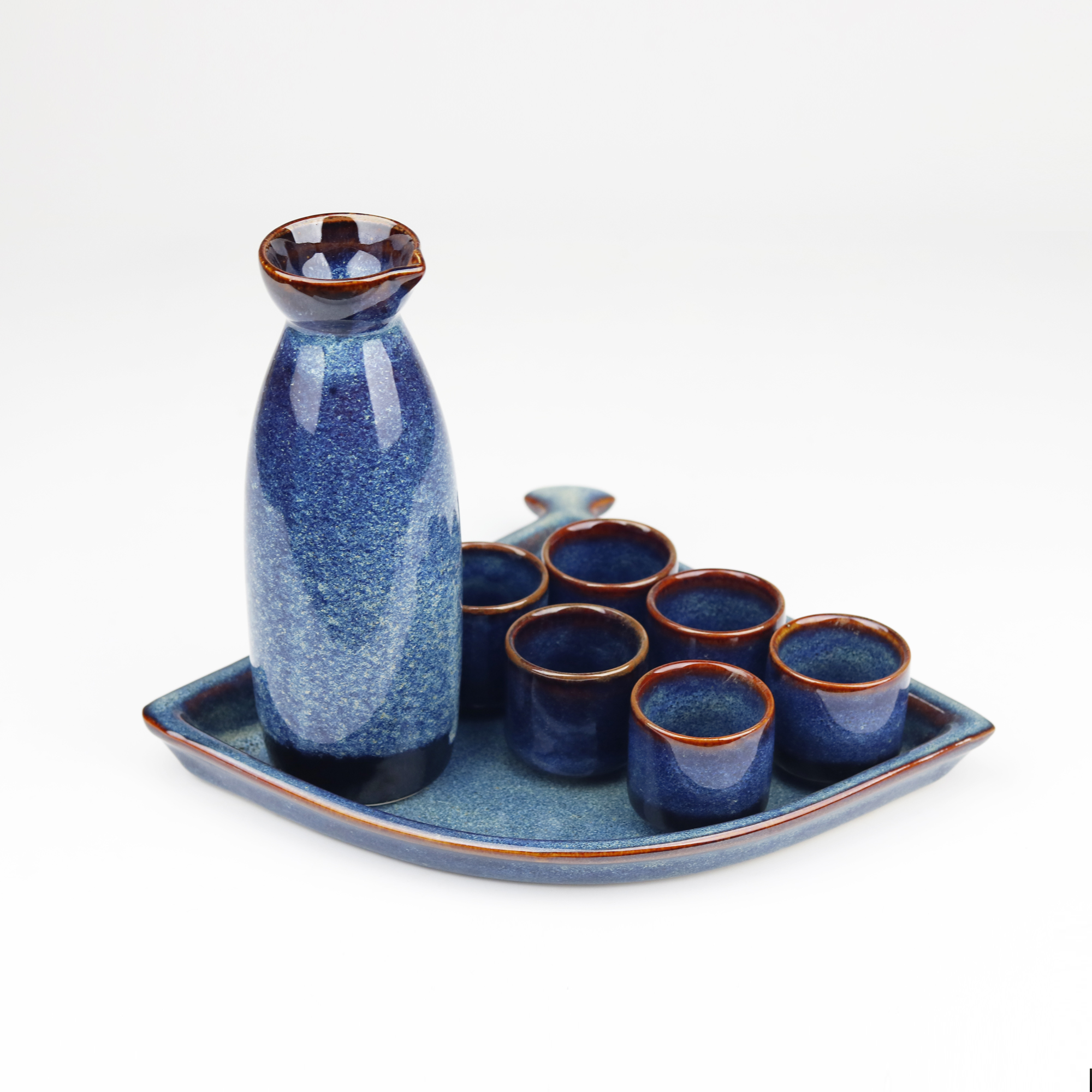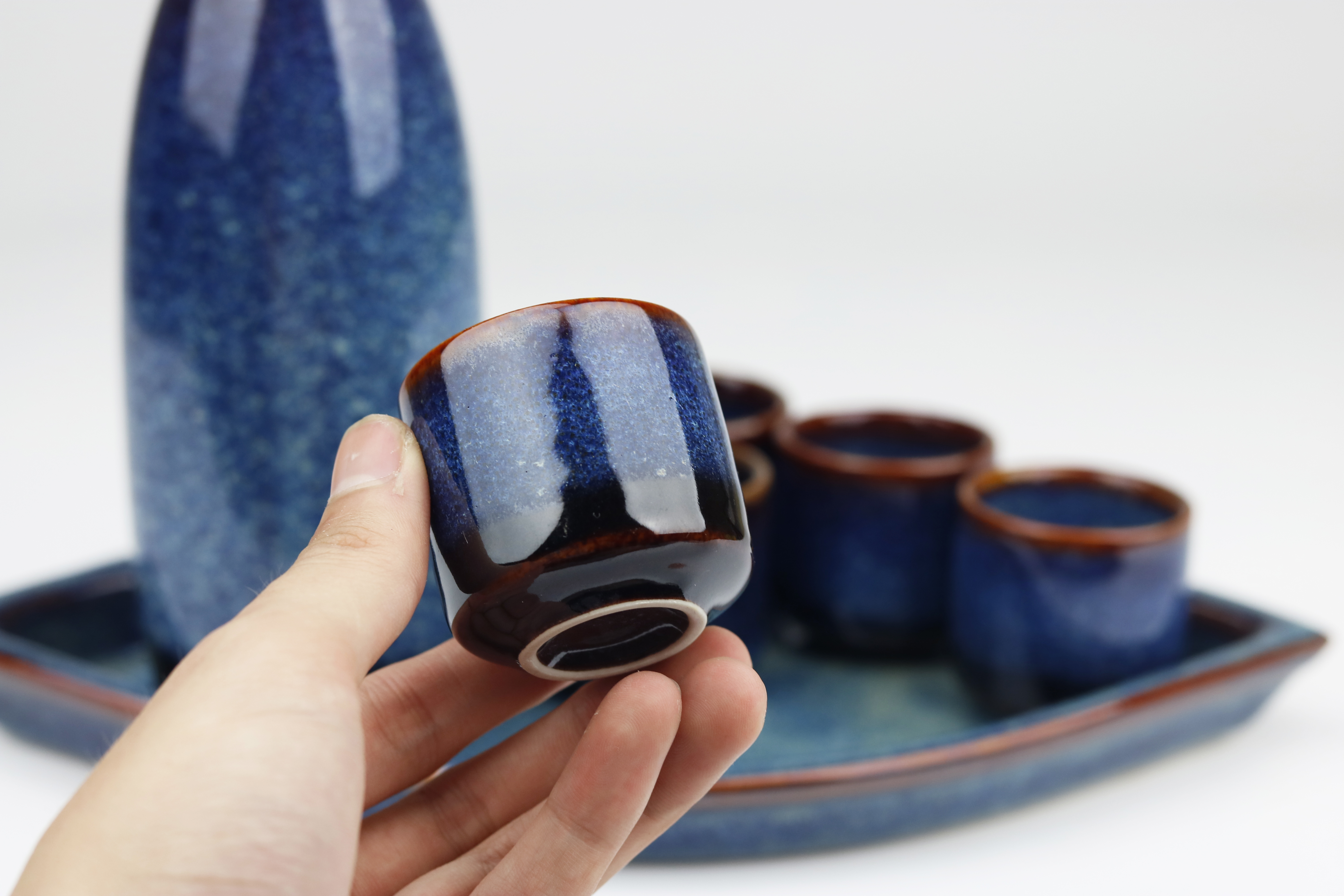 ✨Bộ Sake gốm sứ men hỏa biến Bát Tràng cao cấp-300ml- Đĩa quạt
