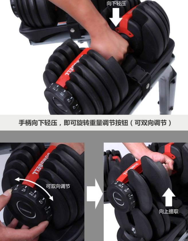 Trọng lượng cài đặt: thay đổi dễ dàng các mức kg tạ từ 2kg - 24kg/tay